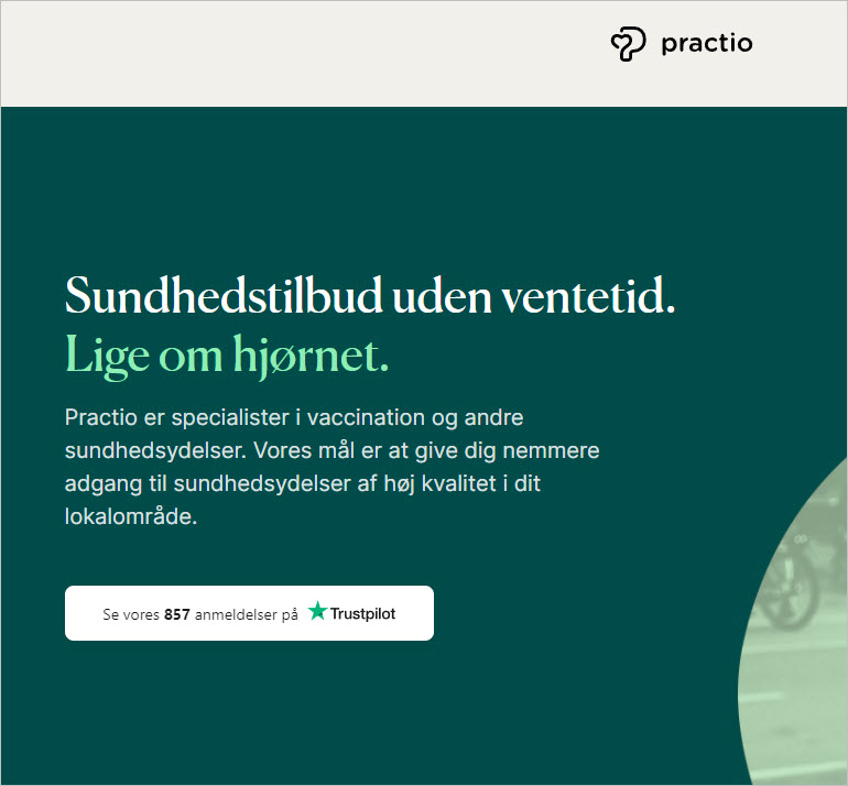 Practio reklamerer endda med at man leverer et sundhedstilbud uden ventetid. Sjovt, ikke?
